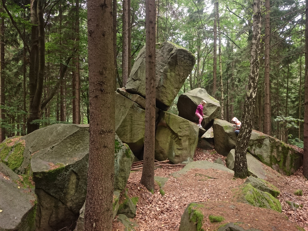 Zvětralé pískovce nedaleko Dvora Králové nad Labem v podobě skalních útvarů nebo jen pohozených balvanů jsou přírodní památkou a také skvělým místem na výlet.certovy hrady leto 20162112.jpg