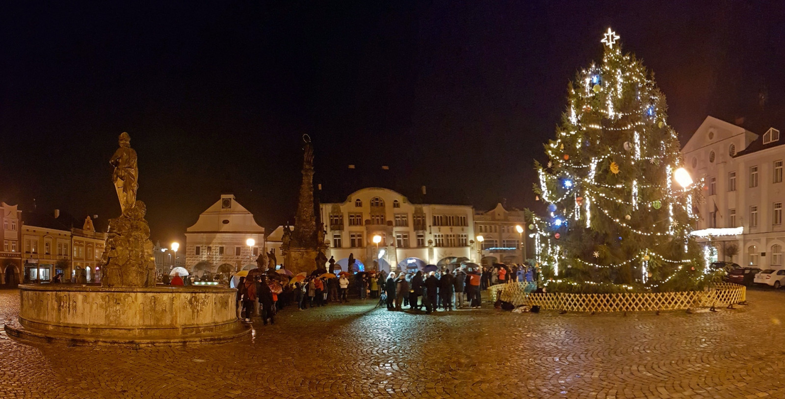 Královédvorský chrámový sbor si i letos zazpíval koledy u Vánočního stromu na náměstí